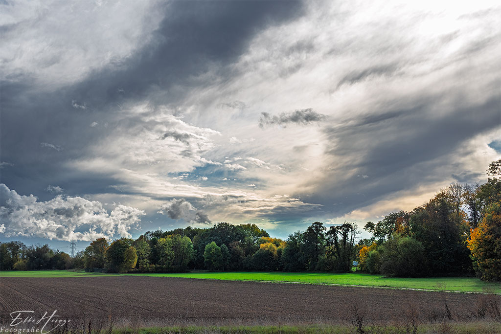 Was für ein Ekelwetter gestern! In der Nacht zum Donnerstag und morgens ziemlich kräftiger Regen, danach mal eine kurze Auflockerung und schließlich heftiger Sturm, immer wieder mit Regen. Die kurze Auflockerung habe ich zum Einkaufen genutzt und vom allseits bekannten Parkplatz mein Monatsmotiv für den 12tel-Blick fotografiert. Dann kamen auch schon wieder die nächsten dunklen Wolken.