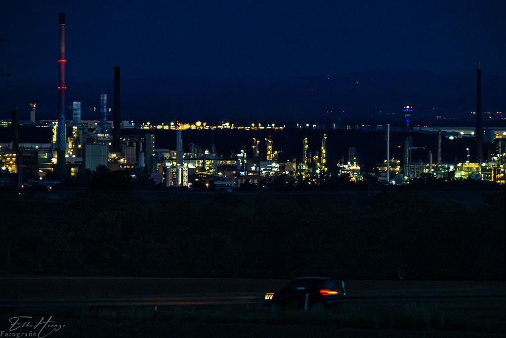 Inzwischen bin ich mir bei dem bewussten Foto sicher, dass man vorn die Lichter des Industrieparks Höchst sieht und dahinter dann den Frankfurter Flughafen. Der dunkle Bereich dazwischen, da verläuft der Main und dort liegt ein Teil Stadtwald. So ein Teleobjektiv komprimiert die Entfernungen ja enorm.