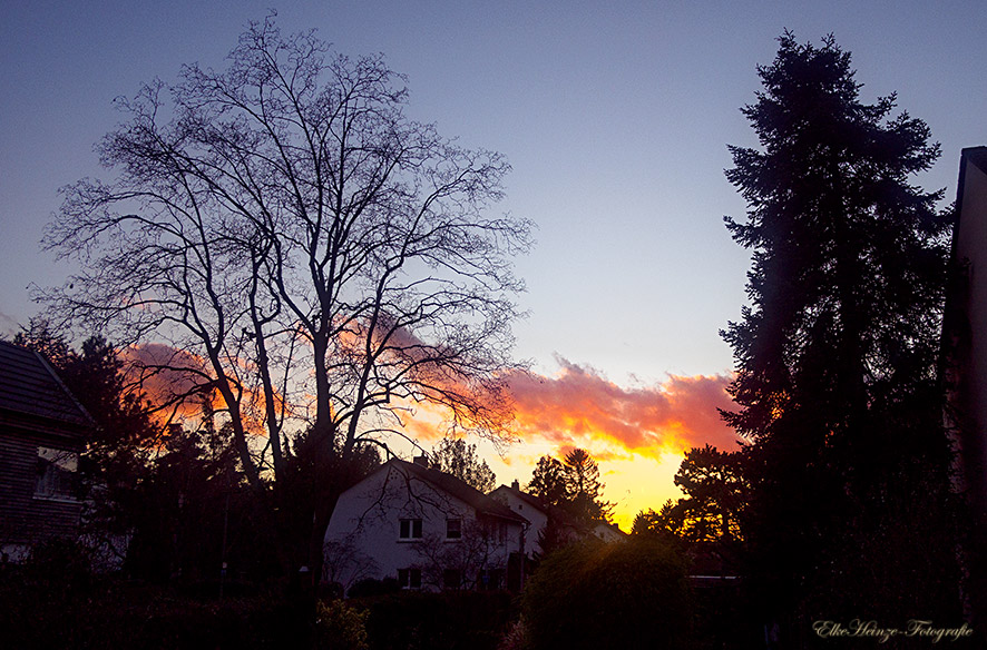 Beim Headerfoto vom heutigen Sonnenuntergang habe ich mich schon eines Colorfilters bedient, aber auch eine ganze Reihe anderer Bilder geschossen, mal in JPEG, mal wie üblich in RAW. Ich zeige euch hier mal das nur leicht nachbearbeitete RAW-Foto desselben Motivs. Der Himmel war tatsächlich eher blau als lila wie oben, was mir auch durchaus besser gefällt.