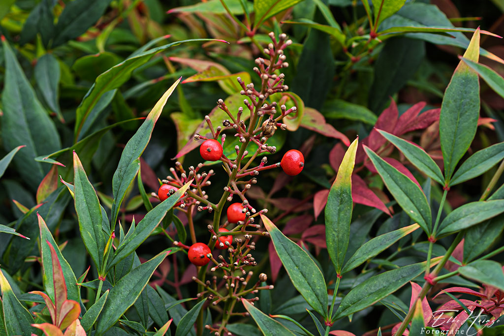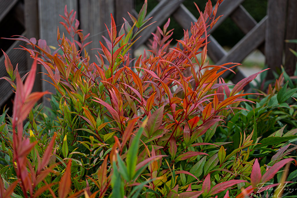 Nandina domestica blüht und fruchtet in Einzelstellung nur schwach. Aber das finde ich überhaupt nicht schlimm, denn er wirkt sowieso in erster Linie durch sein Laub. Die beiden Sorten sind übrigens wintergrün (oder eher bunt), verlieren ihr Laub also nicht.