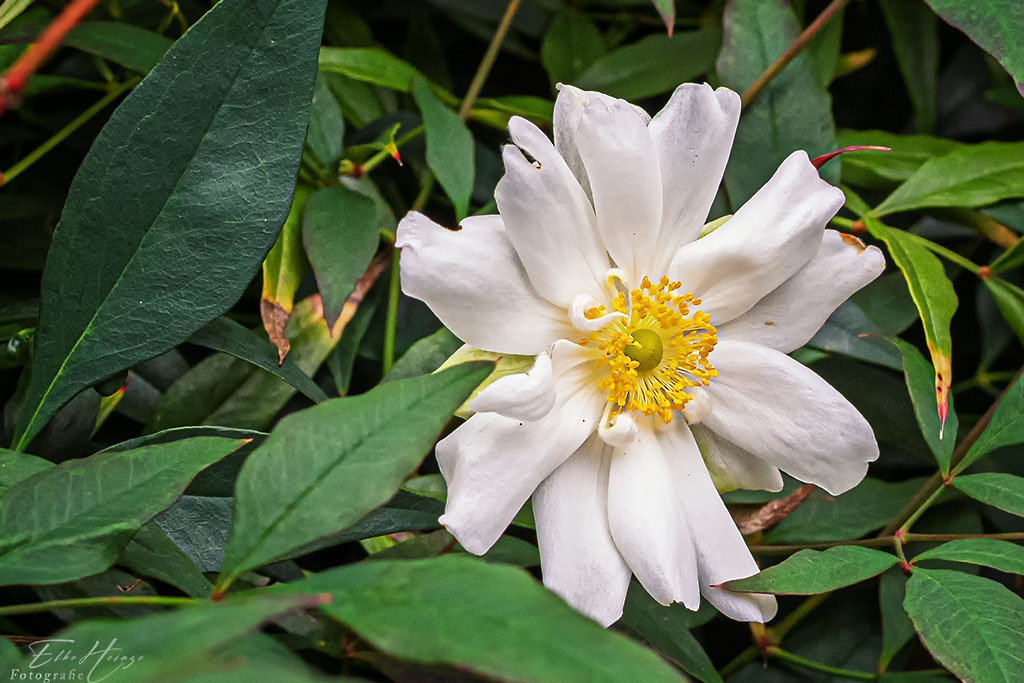 Schön wie die Herbstanemone aus den Blättern hervorlugt. Auch der Rest mit den kleinen samenständen macht sich hervorragend auf deinem Foto.