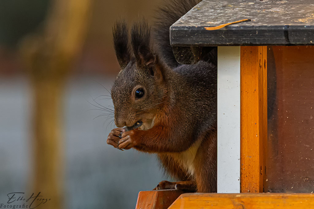 So, Walnuss ist verbuddelt. Jetzt muss das Hörnchen sich erstmal selbst stärken.