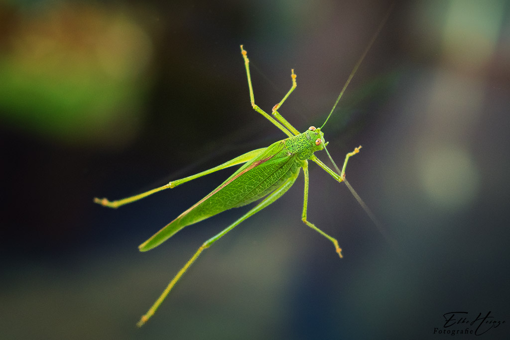 An der Terrassentür besuchte mich heute mal wieder ein Grünes Heupferd. Wie gut, dass ich die Fenster gerade erst geputzt habe. Fokussieren auf Glas geht nur manuell. Der Autofokus versagt hier völlig.