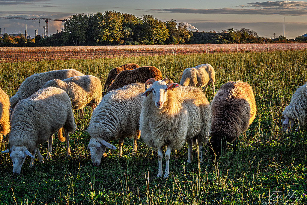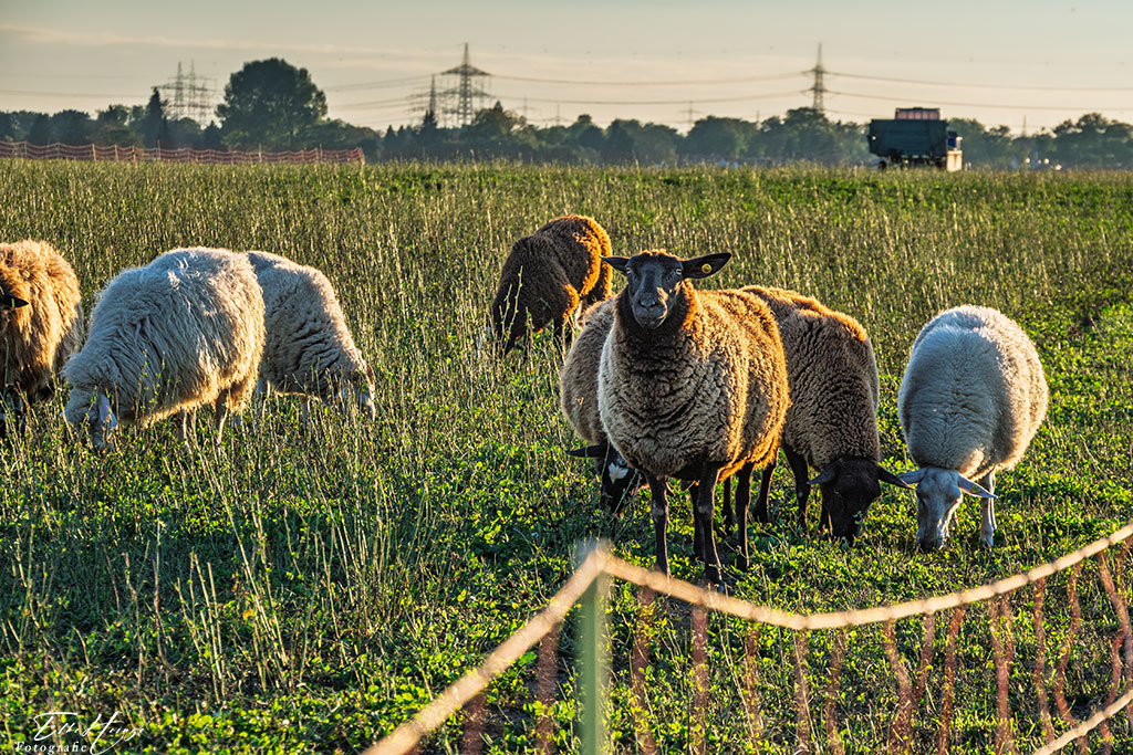 Auf unseren Feldern grast noch eine Schafherde, viel kleiner als im Frühling/Frühsommer. Ich schätze, das sind die zukünftigen Mutterschafe. Der Rest wird vermutlich bereits den Weg allen Fleisches gegangen sein.