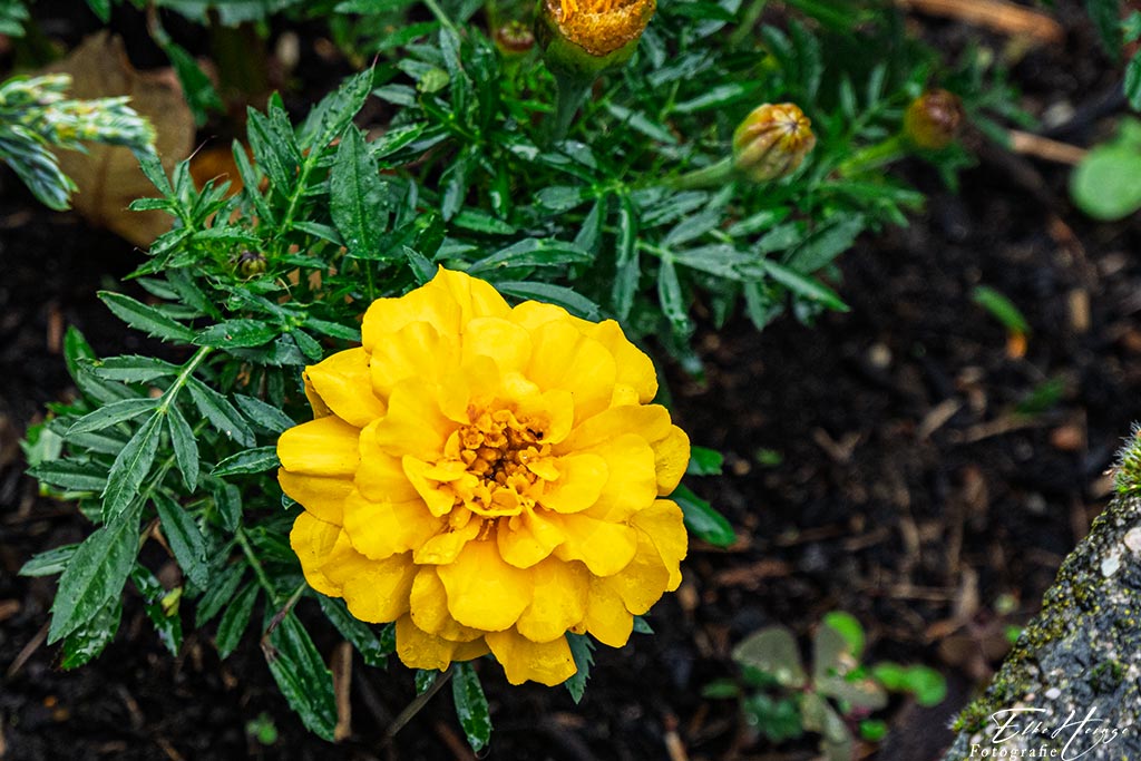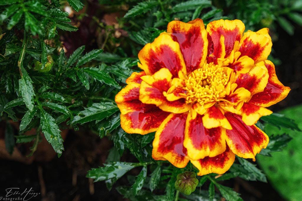 Eine einzelne Tagetespflanze mit unterschiedlichen Blütenfarben macht nochmal richtig Laune. Bissl unscharf die erste Blüte *seufz*. Oder brauche ich wieder eine neue PC-Brille?