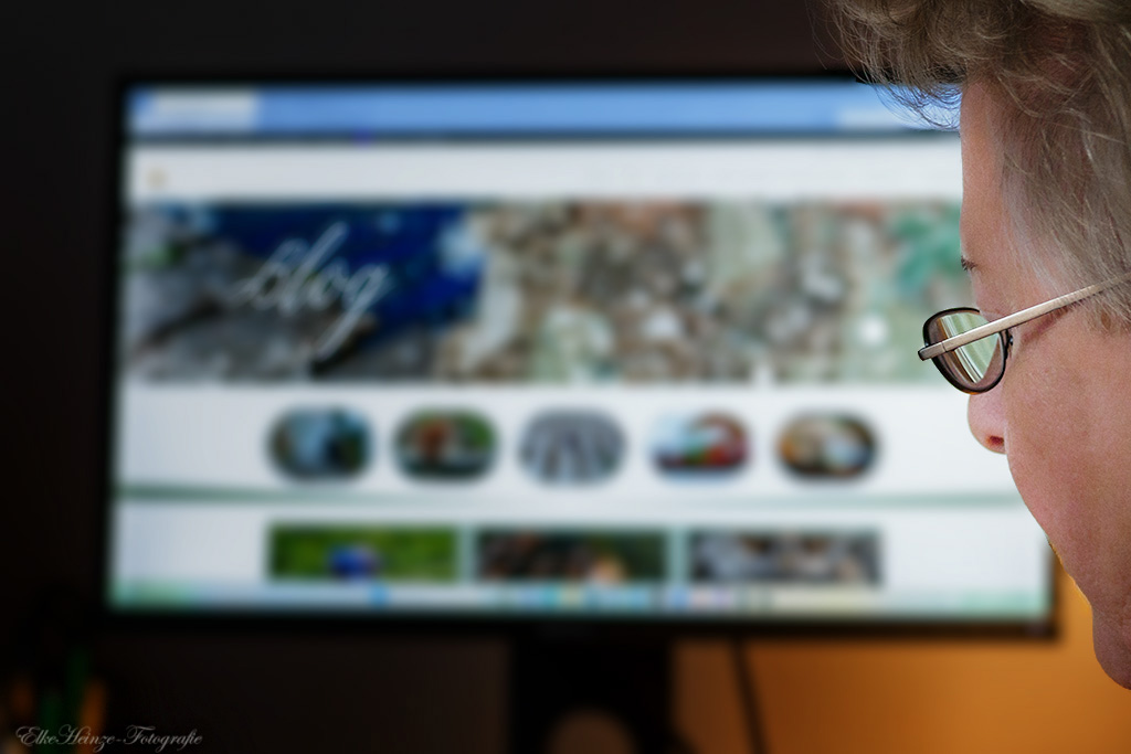 Allmählich fängt es sogar an, Spaß zu machen. Das Headerbild ist nun das erste Bild der Selbstporträt-Serie, das ich mit Kamera auf Stativ und Fernbedienung gemacht habe (die anderen drei sind mit Handy oder Tabletkamera entstanden). Christian hat mir noch einmal bestätigt, dass zum Selbstporträt auch solche Bilder zählen, auf denen nur ein kleiner Teil von mir drauf ist, solange das Ganze etwas erzählt. Hier also ‚Elke am PC, arbeitet an ihrem Blog‚. Alle sieben Fotos gibt es dann wieder am Wochenende.