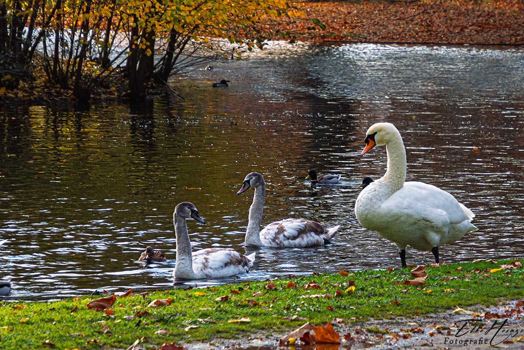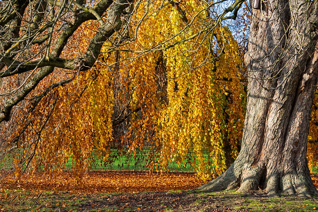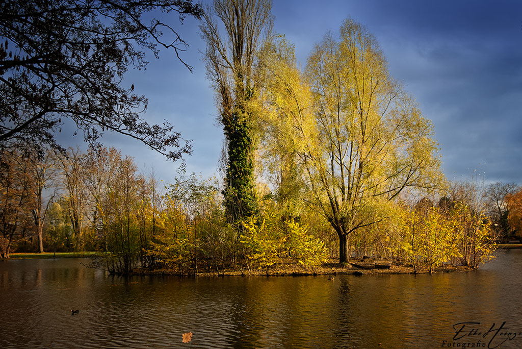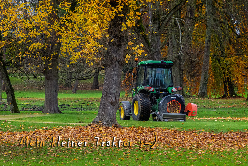 Später bin ich noch eine Runde durch den Stadtpark gelaufen. Hier werden die Rasenfläche jetzt auch vom Laub befreit. Da kommen die reinsten Berge zusammen. Aber ich habe mich gefreut, dass immer noch ein bisschen was Buntes zu sehen war.