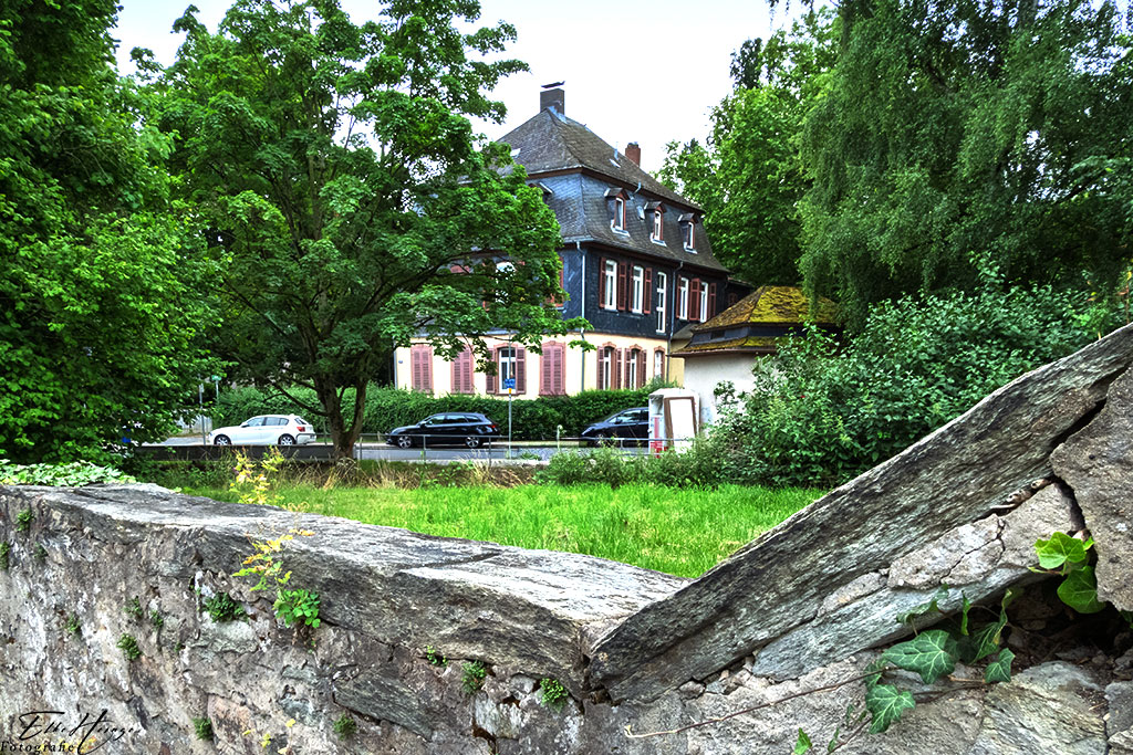 Dieses Teil vor einem eher schmucklosen Haus, vermutlich so aus den 1950er Jahren, fand ich irgendwie schräg. Als ob es von einem alten Friedhof stammen würde. Und möglicherweise ist das gar nicht mal so abwegig. In der Nähe verläuft die A66, bei deren Bau große Teile des alten Unterliederbacher Friedhofs plattgemacht wurden. Einen kleinen Teil davon mit wenigen Grabmälern gibt es noch. Die umgebetteten Grabstätten findet man auf dem neuen Friedhof am Sossenheimer Weg, der bereits 1925 eröffnet wurde. Unsere „Route 66“ entstand während meiner Kindheit im Bereich der historischen Elisabethenstraße. Wenn ich alte Fotos aus dieser Zeit sehe, weiß ich zwar, dass ich das alles noch erlebt habe, aber vorstellen kann man sich das heute kaum noch.