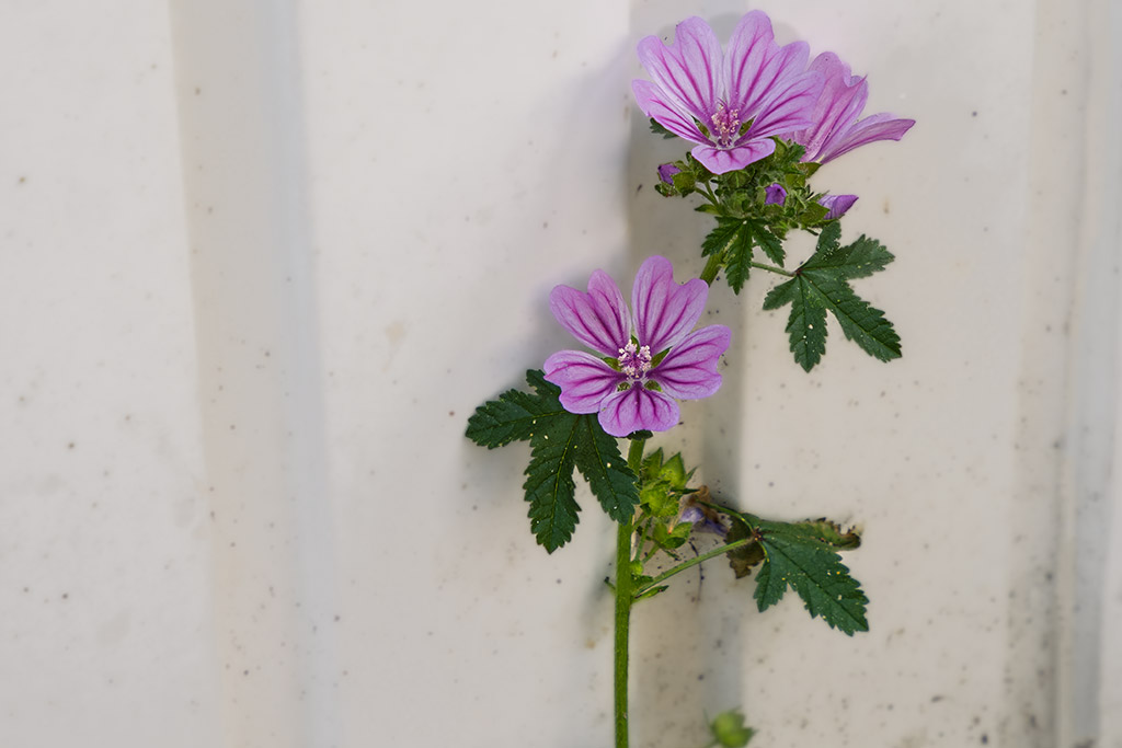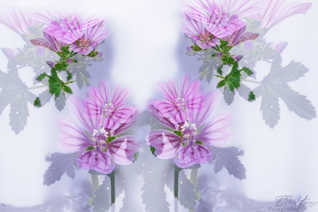 Vor einem alten, ziemlich schmutzigen Garagentor habe ich wilde Malven fotografiert. Weil mir das Motiv nicht so wirklich gefallen hat, habe ich ein bisschen damit herumgespielt.