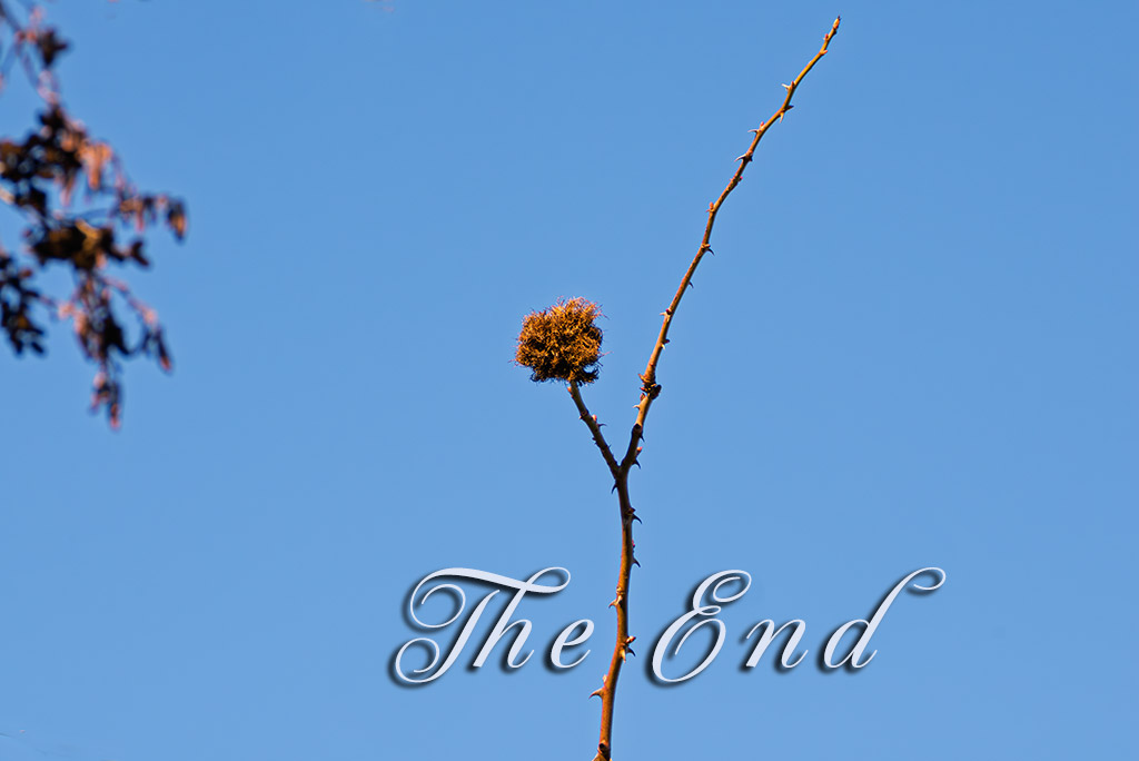 Nein, soweit sind wir noch nicht. Ich dachte nur gerade, dass dieses Bild – eine Rosengalle – kein schlechtes Motiv für das allerletzte Bild auf dieser Website wäre.