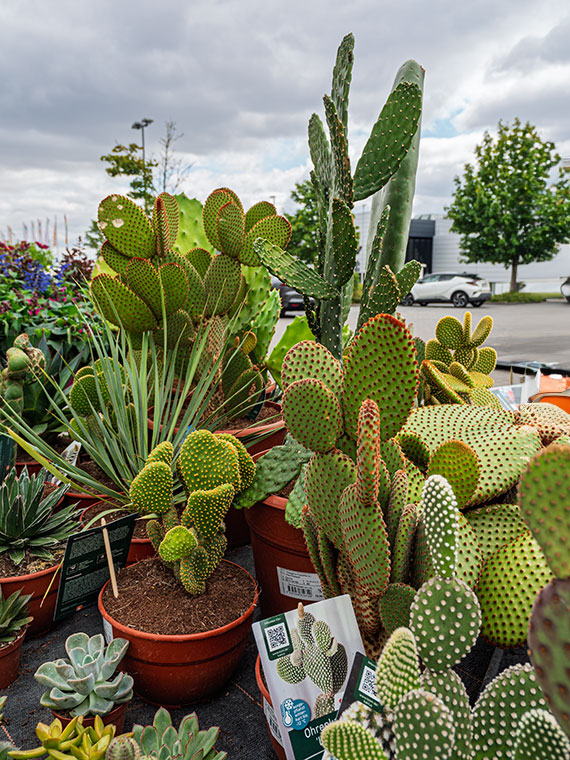 Von der Distel ist es kein großer Sprung zu den Kakteen, die vor einem Baumarkt angeboten wurden. Da waren einige ganz beeindruckende Exemplare bei. Ich habe aber keine gekauft. Früher hatte ich mal Kakteen, aber das ist lange her.