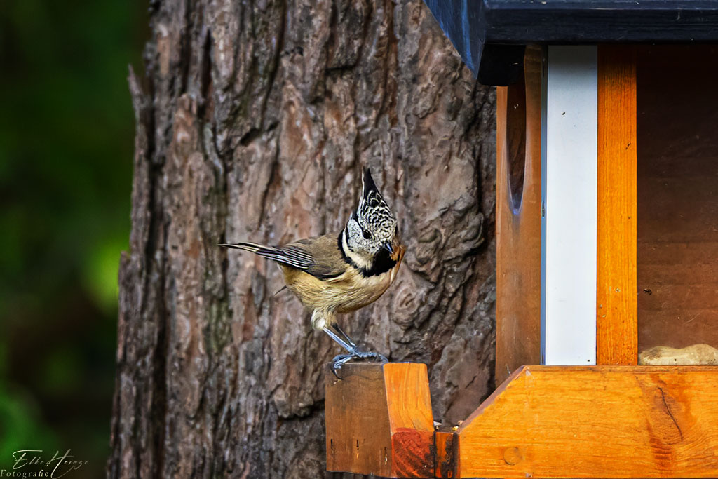 toll, die Haubenmeise – und so gut erwischt ! In unserem Garten haben wir noch nie eine gesehen, euer Grundstück zieht offenbar besondere Tiere an, wenn ich da an die Eulen denke, Libellen habt ihr, Eichhörnchen und Igel. Schön !