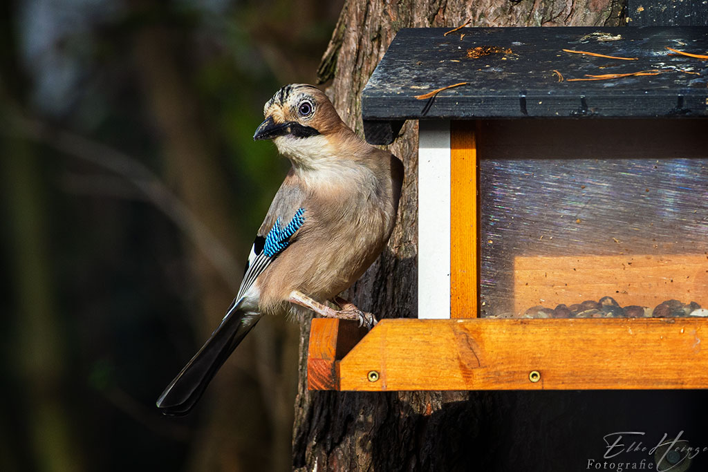 Der Eichelhäher ist ein hübsches Kerlchen, das leider sehr scheu ist und bei der kleinsten Bewegung wieder wegfliegt.