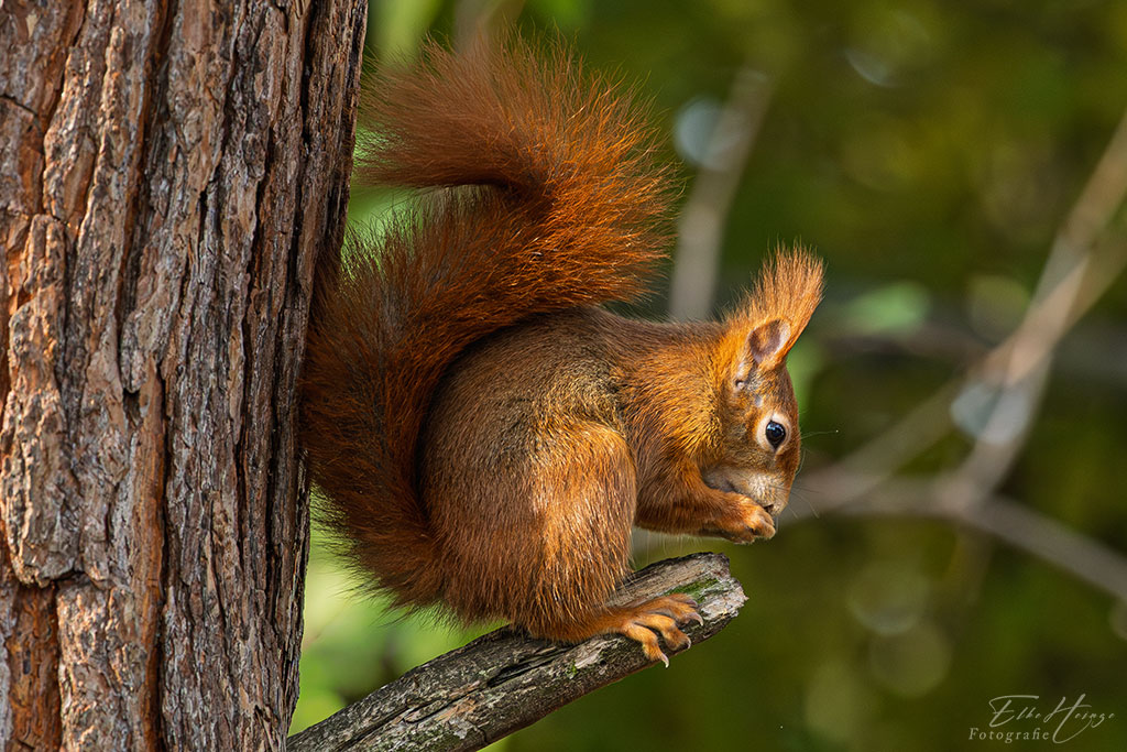 Mir gefällt auch das Bild vom Eichhörnchen, das von der Sonne beschienen wird.