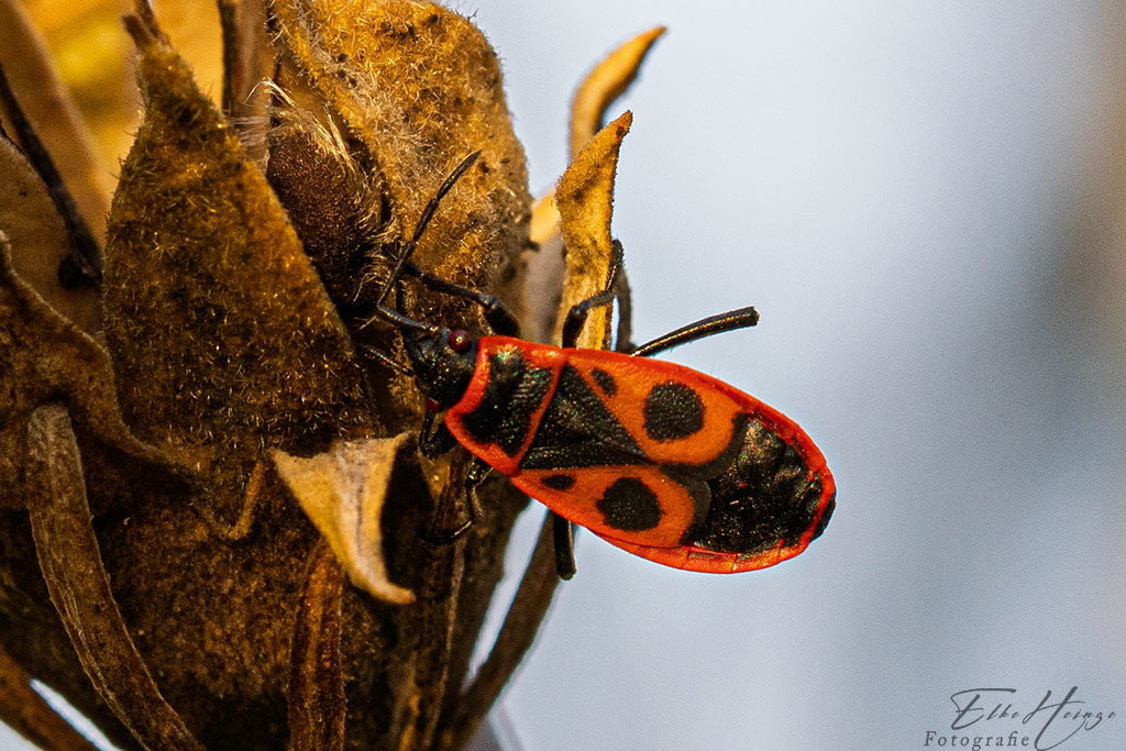 Die Feuerwanzen haben den ganzen Sommer über den Eibisch mit den großen, ungefüllten Blüten belagert. Seitdem die Samen in den Kapseln reif sind, sehe ich dort kaum noch welche.