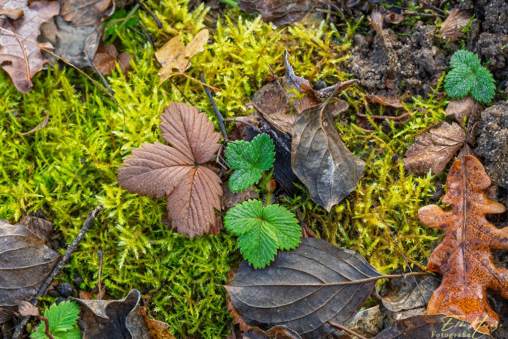 Auf dem steilen Weg runter in die ehemalige Kiesgrube lag viel nasses Laub. Da habe ich schwer aufpassen müssen, um nicht auszurutschen. Am Rand gab es aber dafür auch viel Moos und bunte Blätter zu bewundern.