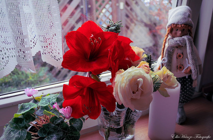 Von Weihnachtsnarzissen habe ich leider noch nie etwas gehört. Sie sehen so bezaubernd aus, liebe Elke. Auch mein Weihnachtsstern hat es geschafft, wobei er jetzt allerdings beginnt, Blätter zu verlieren. So ein bisschen Farbe bei den Zimmerpflanzen tut gut, vor allem, wenn es, wie jetzt, in Strömen regnet und dunkel ist.
