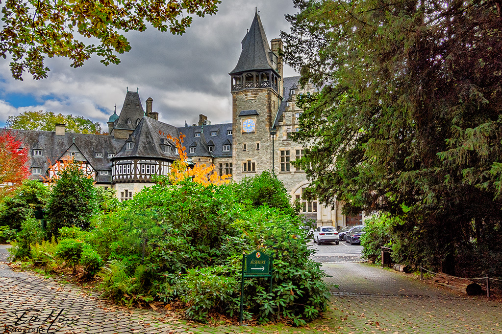 Ich habe mir endlich mal das Schlosshotel in Kronberg und seinen Park näher angeschaut. Falls ihr euch an meinen ersten (und immer noch einzigen) Liebesroman „Taunusküsse“ erinnert, so hatte mich das Kronberger Schlosshotel zu meinem „St. Petersburg“ inspiriert. Und dabei war ich dort immer nur vorbeigefahren und hatte es mir bis heute noch nie wirklich angeguckt. Ich war mir auch nicht sicher gewesen, ob man den Park einfach so betreten dar. Man darf, bis auf den Golfplatz, der allerdings auch einen großen Teil davon in Beschlag nimmt. Wie ihr seht, hat das schöne Wetter im Taunus nicht so wirklich angehalten. Bei uns im Tal schien die Sonne später immer noch.